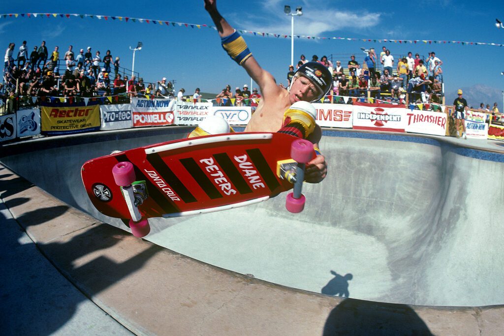 Duane Peters, aka the “Master of Disaster” is a Southern California skateboarder and punk vocalist, inducted into the Skateboarding Hall of Fame in 2015. Coming up in late-’70s pools and parks, he was among the first pros (alongside Steve Olson) to wire punk’s sound and style straight into skateboarding. On a board he’s credited with a run of now-standard moves: acid drop, disaster (fakie hang-up), Indy air, sweeper, invert revert, layback rollout, and the backside layback grind revert, the kind of progress that defined an era of aggressive bowl and vert skating.