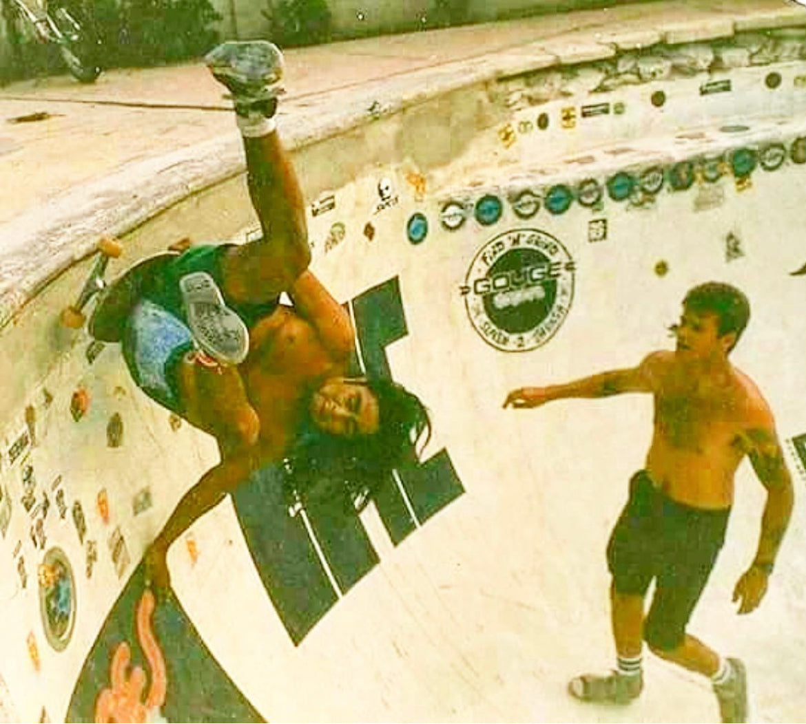 Dave “Psycho Dave” Ortiz, “D.O.” to a lot of us, is an Orange County skateboarder and longtime part of the Skaterbuilt family. He came up in the late ’80s pool scene and shows up in era shots carving the Sign-In Bowl in Anaheim (’89) and in old PowerEdge photos always with fast lines and gnarly grinds.